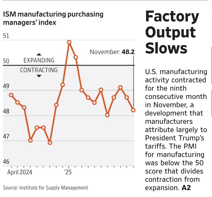 P.P.S.S. As I wrote in “America Doesn’t Have an Affordability Problem. We Have Low Job Growth and High Debt Problems,” America has job growth and debt problems. To that end, see the graph below showing nine straight months of contraction in manufacturing.