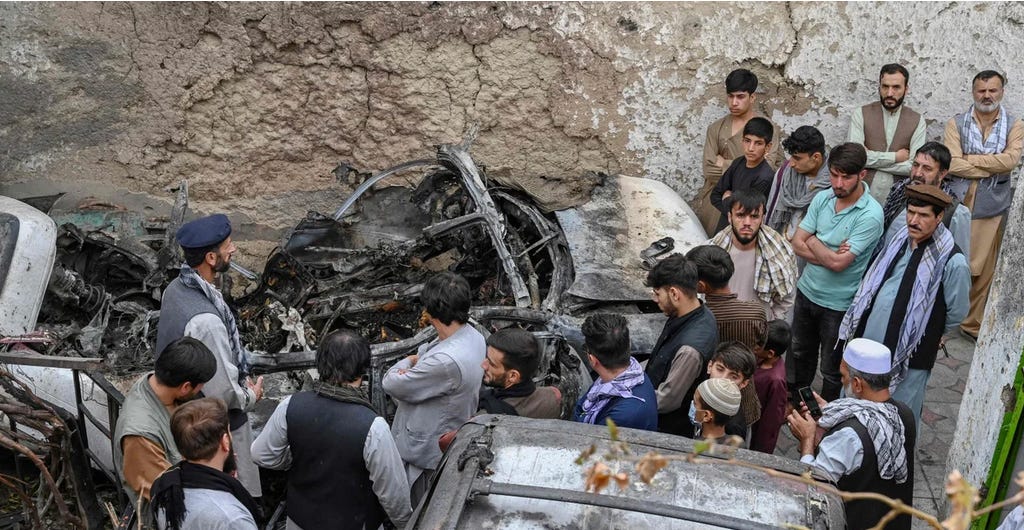 (2) On August 29, 2021, POTUS ordered a drone strike in Afghanistan that killed ten innocent people, including seven children, because it was thought they were part of an attack on U.S. forces. Those murdered weren’t U.S. citizens, so lacked constitutional rights under our system. No action was taken against POTUS or his administration for the killing of innocents; and