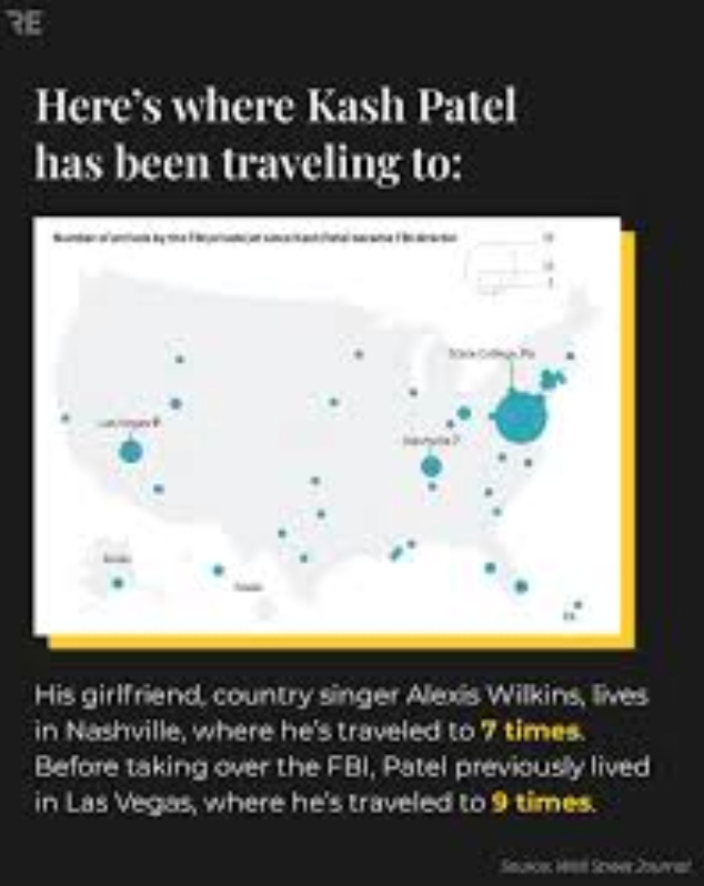 Report aside, I find it offensive that Patel has used government resources to go home or visit his girlfriend in Nashville so often. Yes, I know he is required to use the jet, but he doesn’t HAVE to go home or visit his girlfriend. My view on working for a president based on having done so is you do so in a manner that NEVER EVER takes advantage of the perquisites of office or leads to undermining the president. If Patel wanted to be FBI Director, he should have taken the role knowing he would not be able to go home or visit his girlfriend (versus her coming to Washington, D.C.) precisely because it would require the unnecessary expenditure of taxpayer resources. If it was wrong for FBI Director Chris Wray to fly to his house in the Poconos on weekends, it is wrong for Patel to do so, too. I knew political appointees who abused their offices by taking every perquisite possible. As I’ve written, it disgusted me then and it disgust me now.