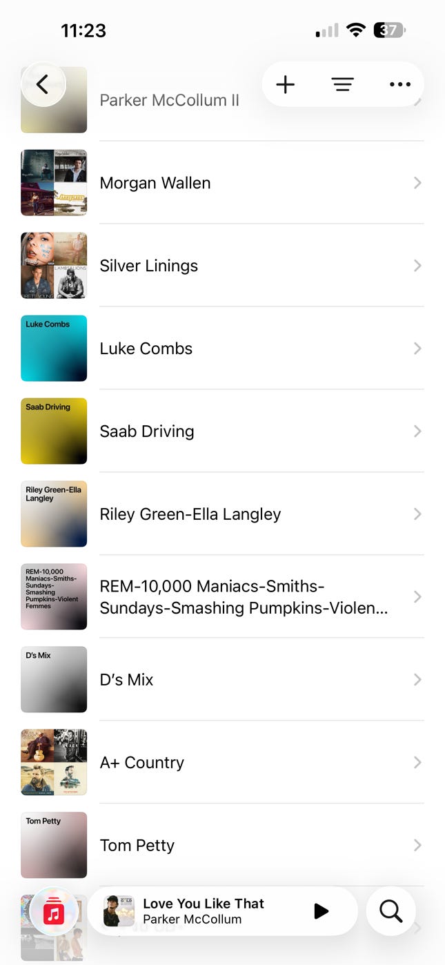 Then, the next bomb dropped on me. You may not know this about me, but I LOVE music. I mean, it affects me in a way few things do. I listen to all kinds of music. I make lots of playlists. Yes, I have my top-notch 1980s playlist and my A+ Country playlist, but any concert I go to, which I do frequently, gets a playlist of the set lists of all performers. I made a playlist for my lovely lady friend (we called them Love Tapes back in high school). I have a specific playlist for when I’m driving my old Saab convertible. Heck, I even made a playlist for my 2023 exploratory run for governor that I’d play at events (see the picture below). I listen to music throughout the day. With the App Store disabled, my monthly Apple Music service expired, so I lost all of my music, as well as playlists. Thankfully, I had used the video record function to record every song I had and the contents of every playlist so I could recreate them, if needed.